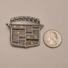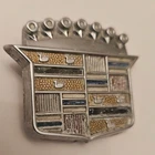 This is a vintage 1971-1976 Cadillac trunk keyhole cover emblem with part number 9724504. The emblem is made of metal with a chrome finish and features the Cadillac logo. It is designed for Cadillac vehicles and is suitable for placement on the trunk or rear. The attachment type is clip-in, and it has dimensions of 1 5/8" x 2". 1971-1976 Cadillac Key Hole Cover Emblem. Emblem only. The paint is very faded, but no other major damage (deep scratches, cracks, breaks) to the piece. The spinning pin is still intact and can easily be reused. P/N - 9724504 Any questions? Feel free to ask! Location - 97
