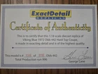1972 Oldsmobile 4-4-2, 1:18 Scale diecast metal is 0506 of 0996 Limited Edition. There is a certificate with it; the certificate has a fold crease (look to the left of 0996 in the last photo) The fold is on the certificate running from top to bottom. The car is Model 313 from Exact Detail Replicas. This beautiful blue car has opening doors, hood, & trunk with a white interior. Exact Detail Replicas has a reputation for "no detail too small". This car is in mint condition, was purchased new and stored in a climate controlled room in a smoke free home. The box was opened for inspection when originally purchased and for these photos. The car was never displayed. Please note there is a small crease in the box corner in the highlighted photo and the second to last photo. This should not affect the value of the car. The blue highlighter is NOT on the box, just the photo. After repackaging the car, the Styrofoam was retaped, and the box will be securely wrapped to protect it during shipping. A long Styrofoam peanut was placed in front of the seats so that they will not fall forward in shipping. This is a rare find and priced and sold for much higher elsewhere.