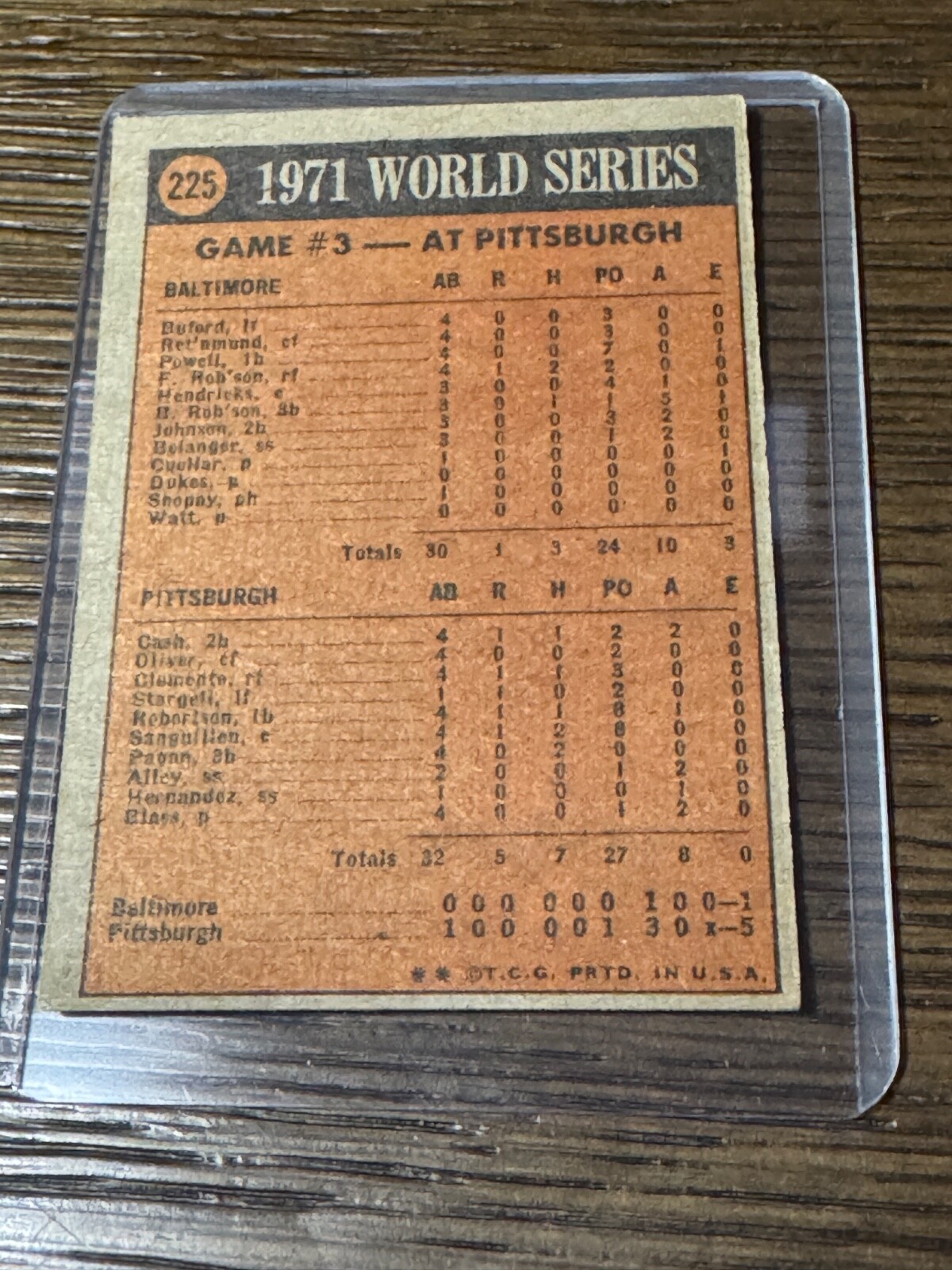 You are buying a 1972 Topps - 1971 World Series #225 Manny Sanguillen -EX - Free Shipping