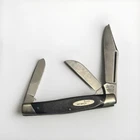 This Buck Model 303 Cadet 3 Blade Stockman Knife is a must-have for any knife collector or enthusiast. The knife features a sleek black color and a manual opening mechanism, making it easy to use with both hands. The blade range is under 2.75 inches, and the knife comes with a Kessler Blended Whiskey year. The knife is an original and factory-manufactured in the United States, with a clip point, sheepsfoot, and wharncliffe blade type. The knife's dexterity is ambidextrous, making it suitable for both left- and right-handed individuals. This collectible folding knife is a modern folding knife, and the knife comes with its original box and paperwork.