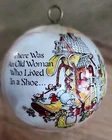 Add a touch of vintage charm to your holiday decor with these delicate satin ball ornaments. One was cafted in 1975,. These unbreakable treasures showcase a beautiful wrapped pattern, featuring a yellow off-white color that evokes the warmth of the holiday season. The small size makes them perfect for adorning any tree or festive display. Two of the Ornaments have There Was An Old Woman Who Lived in a Shoe and on the other side is Hansel and Gretel. The larger ornament from 1975 is a Norman Rockwell. Ornaments have some rusting/staining in the silk part. One is missing a top piece. Please see the photos for additional details. All sales are final. No returns.