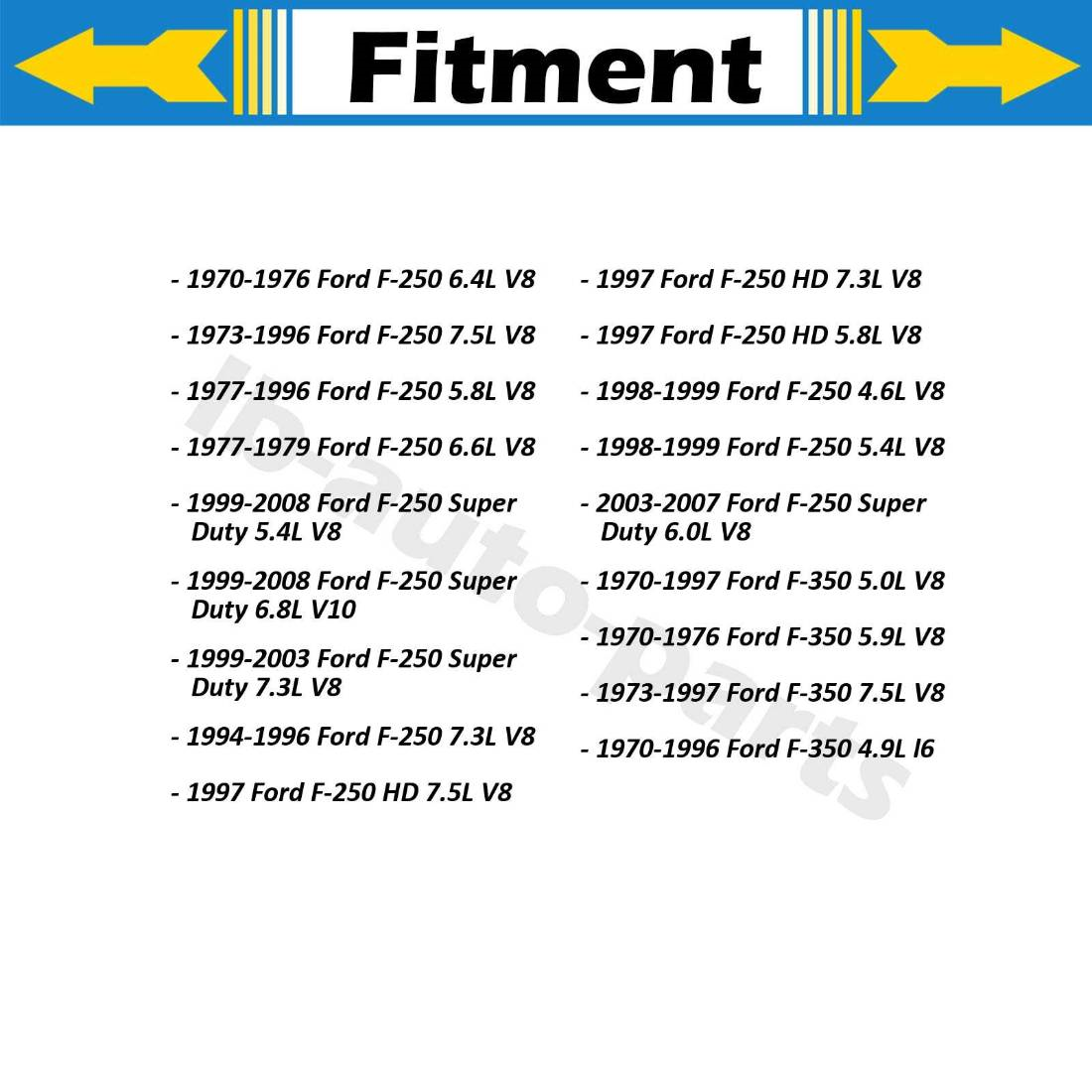 speedsuspenseparts Surface Finish SUBARU IMPREZA WRX SEDAN 2004 2005 2006 2007 Interchange Part Number MONROE GABRIEL BILSTEIN KONI TOKICO OEM TEIN H&R Other Part Number SUBARU IMPREZA WRX SEDAN 2004 2005 2006 2007 Brand KYB Warranty Yes Country/Region of Manufacture Japan Manufacturer Part Number 334470 334471 334358 334359 Placement on Vehicle Front MPN 9AJDM20210831TF204A UPC Does not apply For 1975-2008 F-150 2X TRICO Front Windshield Wiper Blade Refill 1975-1979 Ford F-150(For Exact Fit Blade) 1995-1996 Ford F-150(For Exact Fit Blade) 1998-2008 Ford F-150(For Exact Fit Blade) 1994 Ford F-150(For Exact Fit Blade-Late) 2004 Ford F-150 Heritage(For Exact Fit Blade) 1970-1979 Ford F-250(For Exact Fit Blade) 1995-1996 Ford F-250(For Exact Fit Blade) 1998-1999 Ford F-250(For Exact Fit Blade) 1994 Ford F-250(For Exact Fit Blade-Late) 1997 Ford F-250 HD(For Exact Fit Blade) 1999-2008 Ford F-250 Super Duty(For Exact Fit Blade) 1970-1979 Ford F-350(For Exact Fit Blade) 1995-1997 Ford F-350(For Exact Fit Blade) 1994 Ford F-350(For Exact Fit Blade-Late) Item Specifics Refill Material: METAL Rubber Element Formulation: NATURAL RUBBER UPC: Does not apply Brand: TRICO Manufacturer Part Number: SSPPLAPA221110044220 Package Included: 2 Front Windshield Wiper Blade Refill Placement on Vehicle: Front Part Type: Windshield Wiper Blade Refill Category: Windshield Wiper Blades Fitment 1: for 1975-1979 1994-1996 1998-2008 Ford F-150 Fitment 2: for 2004 Ford F-150 Heritage Fitment 3: for 1970-1979 1994-1996 1998 1999 Ford F-250 Fitment 4: for 1997 Ford F-250 HD Fitment 5: for 1999-2008 Ford F-250 Super Duty Fitment 6: for 1970-1979 1994-1997 Ford F-350 Payment 1. We ONLY accept Paypal. Please do not email us to ask for other payment option. 2. We appreciate prompt payment and look forward to your business in the future. Unpaid item will be filed without receiving payment in 7 days from listing ended. Shipping 1. Free shipping ONLY apply to US Domestic Continental States. 2. Our orders are usually shipped within 48 business hours after payment received unless there are problems with the order. If this is the case we will contact you via your eBay email address or telephone number. 3. Orders are normally processed each working day not including weekends. Usually if your payment is received after 3:00 P.M on Friday. or on the weekend, it is processed on the next business day. Returns 1. If the part you received has any shipping damage, possible manufacturer defects, or breaks after proper installment it falls under our limited warranty coverage. Please make sure the part fits your vehicle and you are completely satisfied before running fluids through it. 2. If you are not satisfied, please contact us first. All returns must be authorized and approved by we. An RMA# is required for all returns or exchanges and will not be accepted by the shipping warehouse without one. 3. Parts returned to us must be in unused and unaltered condition with original packaging(or better packaging). A 30% re-stock fee applies to any wrongfully ordered rotors or if you decide it is no longer needed. If you would like to exchange it for the correct rotors, please contact us prior to ordering another rotors. Contact Us 1. All our products come with 1 year warranty. 2. All warranty/return items must accompany by a return approval (RA) note. Please contact us via Ebay message board to obtain a return approval. 3. We do this to minimize errors and misunderstanding.Any item returned without an RA note will not be looked at or contact and would eventually be discarded. This will cause delay to your warranty claim. 4. We will not be responsible for any loss incurred by the buyer sending an unmarked item to our store. The Buyer will need to bare all costs in processing the returned item. DESCRIPTION PAYMENT SHIPPING RETURN POLICY CONTACT US For 1975-2008 F-150 2X TRICO Front Windshield Wiper Blade Refill Item Specifics Refill Material: METAL Rubber Element Formulation: NATURAL RUBBER UPC: Does not apply Brand: TRICO Manufacturer Part Number: SSPPLAPA221110044220 Package Included: 2 Front Windshield Wiper Blade Refill Placement on Vehicle: Front Part Type: Windshield Wiper Blade Refill Category: Windshield Wiper Blades Fitment 1: for 1975-1979 1994-1996 1998-2008 Ford F-150 Fitment 2: for 2004 Ford F-150 Heritage Fitment 3: for 1970-1979 1994-1996 1998 1999 Ford F-250 Fitment 4: for 1997 Ford F-250 HD Fitment 5: for 1999-2008 Ford F-250 Super Duty Fitment 6: for 1970-1979 1994-1997 Ford F-350 1975-1979 Ford F-150(For Exact Fit Blade) 1995-1996 Ford F-150(For Exact Fit Blade) 1998-2008 Ford F-150(For Exact Fit Blade) 1994 Ford F-150(For Exact Fit Blade-Late) 2004 Ford F-150 Heritage(For Exact Fit Blade) 1970-1979 Ford F-250(For Exact Fit Blade) 1995-1996 Ford F-250(For Exact Fit Blade) 1998-1999 Ford F-250(For Exact Fit Blade) 1994 Ford F-250(For Exact Fit Blade-Late) 1997 Ford F-250 HD(For Exact Fit Blade) 1999-2008 Ford F-250 Super Duty(For Exact Fit Blade) 1970-1979 Ford F-350(For Exact Fit Blade) 1995-1997 Ford F-350(For Exact Fit Blade) 1994 Ford F-350(For Exact Fit Blade-Late) Payment Shipping Returns Contact Us 1. We ONLY accept Paypal. Please do not email us to ask for other payment option. 2. We appreciate prompt payment and look forward to your business in the future. Unpaid item will be filed without receiving payment in 7 days from listing ended. 1. Free shipping ONLY apply to US Domestic Continental States. 2. Our orders are usually shipped within 48 business hours after payment received unless there are problems with the order. If this is the case we will contact you via your eBay email address or telephone number. 3. Orders are normally processed each working day not including weekends. Usually if your payment is received after 3:00 P.M on Friday. or on the weekend, it is processed on the next business day. 1. If the part you received has any shipping damage, possible manufacturer defects, or breaks after proper installment it 