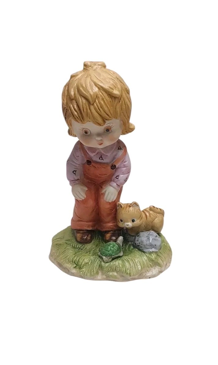 This is a set of three small figurines from 1979 by Enesco, featuring Country Farmhouse Kids. The hand-painted figurines are made of porcelain/ceramic, each measuring approximately 4" in height & 3" in width. They come with their original stickers & are dated. All three in excellent condition, no chips or cracks. The charming figurines are suitable for various rooms & occasions, adding a fun, playful touch to any space. This set will ship with immense care, fast & FREE! If you have any questions or would like more pictures of a certain angle I may have missed just reach out & I will reply promptly. Thank you!