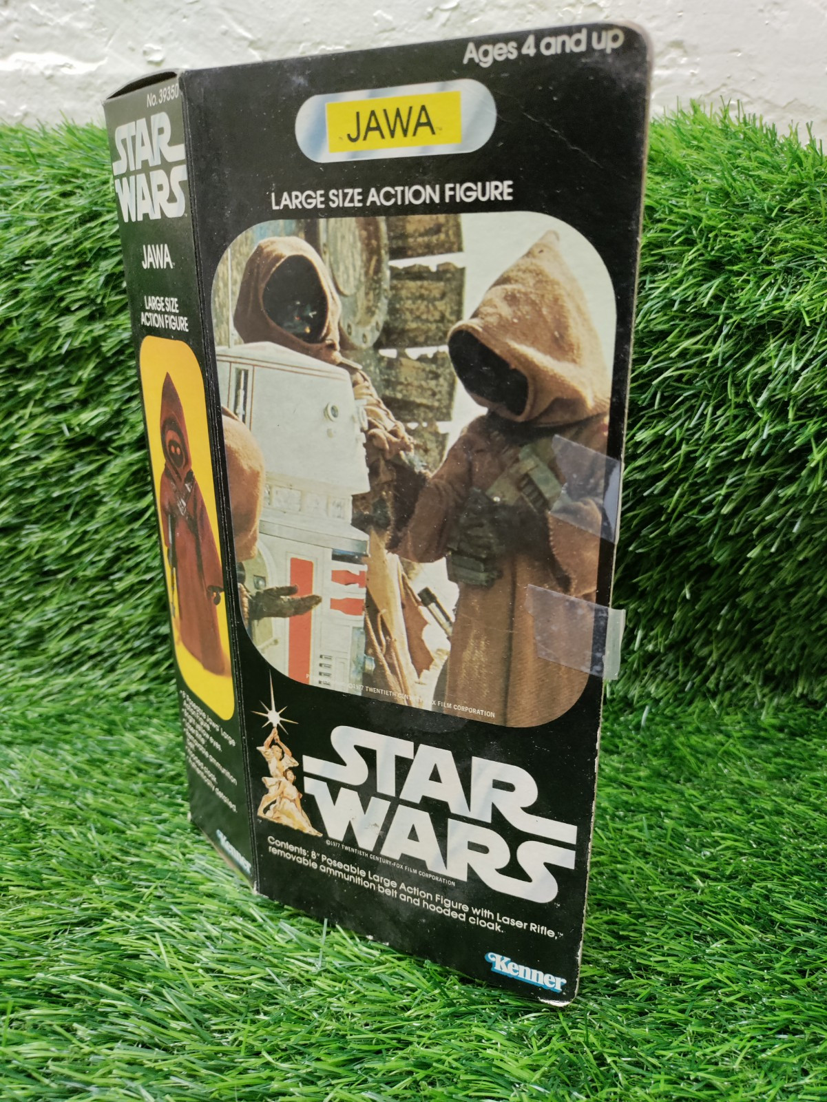 Box has some wear. The product is a vintage 1979 Kenner Star Wars Jawa action figure from Star Wars: Episode IV - A New Hope. It is a large size figure, scale 1:6, made of plastic, and comes in its original unopened packaging. This rare collectible is part of the Star Wars franchise and was manufactured in the United States. Please check pictures for condition. We do our best to assure that you receive your order correctly and promptly but sometimes we can make an honest mistake, please contact us directly if you are not satisfied with your order for any reason. If your order is not as described we will cover all the return shipping costs and issue a prompt refund once it is receive. All items must be sent back in their original condition with all parts or pieces along with the original packaging. If any order is sent back and is as described and there is nothing wrong with it, not in the original packaging or missing parts or pieces, you will be responsible to pay the return shipping costs and there will be a 35% restocking fee to help recoup some of the original shipping and handling costs, Ebay and Paypal fees no exceptions