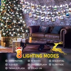Super Long LED light string:500LED string lights total length is 197FT ,plug wire of 9.84FT,The spacing between each LED bead is 3.9 inches,it can not only decorate indoor spaces,such as Children's beds,bookshelves,fireplaces,but also decorate outdoor landscapes,such as decks,fences,balconies,Christmas trees,etc.allowing you to decorate freely without worrying about the string lights being too short 8 Light Modes and Memory Munction:Christmas lights has 8 light modes (Combination,In waves,Sequential,Slo-glo,Chasing/flash,Slow fade,Twinkle/flash,Steady on) You can choose your favorite mode according to different occasions and moods to create a unique festive atmosphere. And the christmas lights outdoor has a memory function,which can automatically save the last light mode. Make your Christmas decoration easier Safety and Timer:LED christmas lights outdoor adopt 29V low voltage power plug,safe to touch for kids and pets.Made of PVC transparent wire and Low-temp LED beads,It can prevent overheating and prolong the service life.you can also set the usage time of the LED string light through the plug(6 hrs on,18 hrs off) IP44 Waterproof:IP44 waterproof design,this outdoor Christmas string light can withstand all kinds of harsh weather conditions such as rain and snowflakes. You can use it with confidence,whether it's a indoor Christmas tree or an outdoor patio,and it's easy to decorate for a stunning Christmas effect.You can also give these fairy lights to friends,neighbors,share the joy,and let them experience the wonderful lighting effects together Package includes:1XChristmas light string,1Xplug,We designed this Christmas light string with a variety of use scenarios in mind,it can not only decorate indoor spaces,such as living rooms,bedrooms,but also decorate outdoor landscapes,such as weddings,gardens,porches,Christmas trees,etc. Whether you're looking for classic interiors or outdoor embellishments,this string lights has something you need for Christmas decorations