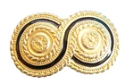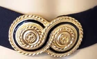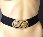 1980s Day-Lor Belt Buckle Black Stretch Belt, Infinity Large Gold Buckle Retro Style: Retro Color: Gold, black Size: Belt is 28″ long unstretched and 2″ wide. Buckle is 4″ x 2.25″ Made of: Metal and fabric Condition: This item is pre-owned and used, so most likely will not be acceptable to the 'mint' or 'new' buyer. Please use the 'zoom' feature to see details of item. Approximate Date: 1980s Hallmarks/signature: Day-Lor If you are happy with your purchase, please leave positive feedback. If for some reason you are not satisfied, please reach out to us, we value our customers!