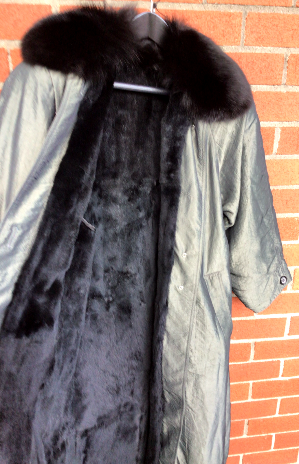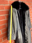 You are looking at an immaculate, like-new condition... 1980s vintage Trench/rain coat with deep dark green outer, and full length black rabbit fur lining, with black fox fur collar. This coat is Carole Little St Tropez brand, size XS on the ticket, but fits more like a women's large. I believe this is because this is a luxury/ "couture" brand, so the sizing is off. The lining I believe is Helen Frushtick brand and is fully removable with buttons (collar and lining are connected). The real fur lining can be used with other coats too, or the outer-coat from this jacket can be worn on its own in the spring and fall. The jacket includes matching material belt, multiple pockets, and is very high quality. Plush, fluffy fur lining to keep you warm. The natural material is breathable, and will last for generations. There are not blemishes on this jacket- the lining and outer are both intact, without stains, pulls, or other imperfections. This jacket is a stylish statement piece, and can either be dressed up or down depending on the occasion. Dimensions: 50" long collar to hem line 59" along bottom hem line 19" flat across chest 21" from top of sleeve to base of sleeve Your purchase will include a garment storage bag, and wide fur coat hanger to keep the coat safe and protected. Your purchase will ship within 2 business days of payment via USPS, ups, or fedex shipping with tracking and insurance to your destination. Please reach out with any questions, we are happy to help!
