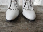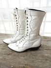 Vtg White Victorian Style Lace Up Shoes|Vtg 1980's Loredo Leather Prairie Boots|Ladies Speed Hook White Boots sz This is a great pair of Prairie boots by Loredo. They are white leather with 7 speed hooks. They have a pointed toe and low heel. They are a size 5 M and Made in the USA. I have polished these boots for you and they are ready to go! A great costume piece or wear with tights or short trousers. Good condition with a slight musty odor that can be aired out. I'll start that process! Overall wear as seen in the photo's provided. Thank you for visiting my Shop today! Do stop back, I'm adding new merchandise almost daily. Buy with Confidence! Domestic Shipping: FREE International Shipping: $49.95 (any overages to be refunded) Sorry, No Shipping to China at this time. Smoke free environment. International Bidders welcomed. USPS Shipping within 1 to 3 business days of payment. Combined shipping available on multiple purchase upon request. Returns accepted within 14 days of receipt of your purchase within return policy guidelines. Buyer to pay return shipping. Item to be returned to Seller within 5 days of the approved return request and received in the same condition as it was sent. Please feel free to contact me at anytime with any questions you may have. Contact me with any concerns regarding your purchase prior to leaving a review please. Happy Shopping!