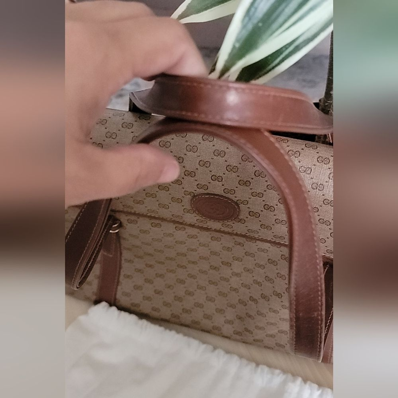 Elegant Gucci tote with iconic monogram pattern. Features brown leather trim and handles. Perfect for everyday use Gucci Micro GG Logo Monogram Satchel Bag Vintage 1980's with inside Charm and Dust Bag in good condition..