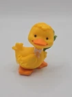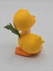 This is a 1981 Hallmark Merry Miniatures figurine featuring a yellow duck for Easter. The miniature is part of the Merry Miniatures collection and measures 2 inches in length. It is missing the flowers that originally accompanied it.