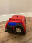 Used condition. Batteries are not included. However, I tested it out, and it was working. The 4 wheel drive was functioning great. That is what's shown in the video. The 2 wheel drive isn't as strong. It doesn't always seem to work and I feel like you can sometimes hear the gears stripping. The 4 wheel part is still working great though. There is some normal cosmetic wear including the stickers starting to peel and having to be taped back down. It is also missing the sticker on the hood. Please see pictures for specifics. Let me know if you have any other questions or want more pictures and I'd be happy to help. Thanks for checking out my item!