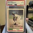This 1982 Topps sports trading card features the iconic athlete Rickey Henderson, and has been professionally graded by the reputable Professional Sports Authenticator (PSA) with a grade of 6. The card is a must-have for any collector of sports memorabilia, and is part of the 1982 Topps set. The card is perfect for fans of baseball and sports trading cards, and is a great addition to any collection. The manufacturer of the card is Topps, and it is a graded card with a grade of 6. This card is a rare find for collectors, and is sure to be a valuable addition to any collection.