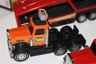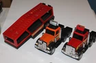 You receive actual items pictured. Orange Semi lights turn on when tested but wheels not currently spinning - possible to repair with a little work. Red semi is missing the metal insert for the other side of the batteries that slides into the plastic slot. Ships quickly and securely. Combined Shipping Note: Please click on the "request total" button once you load items in your cart so we can apply the shipping discounts. We recently have seen that many buyers have not had this button work properly. If this does not work for you, please note that we will refund the shipping overpayments very quickly back to you thru your PayPal account once your item is packaged.