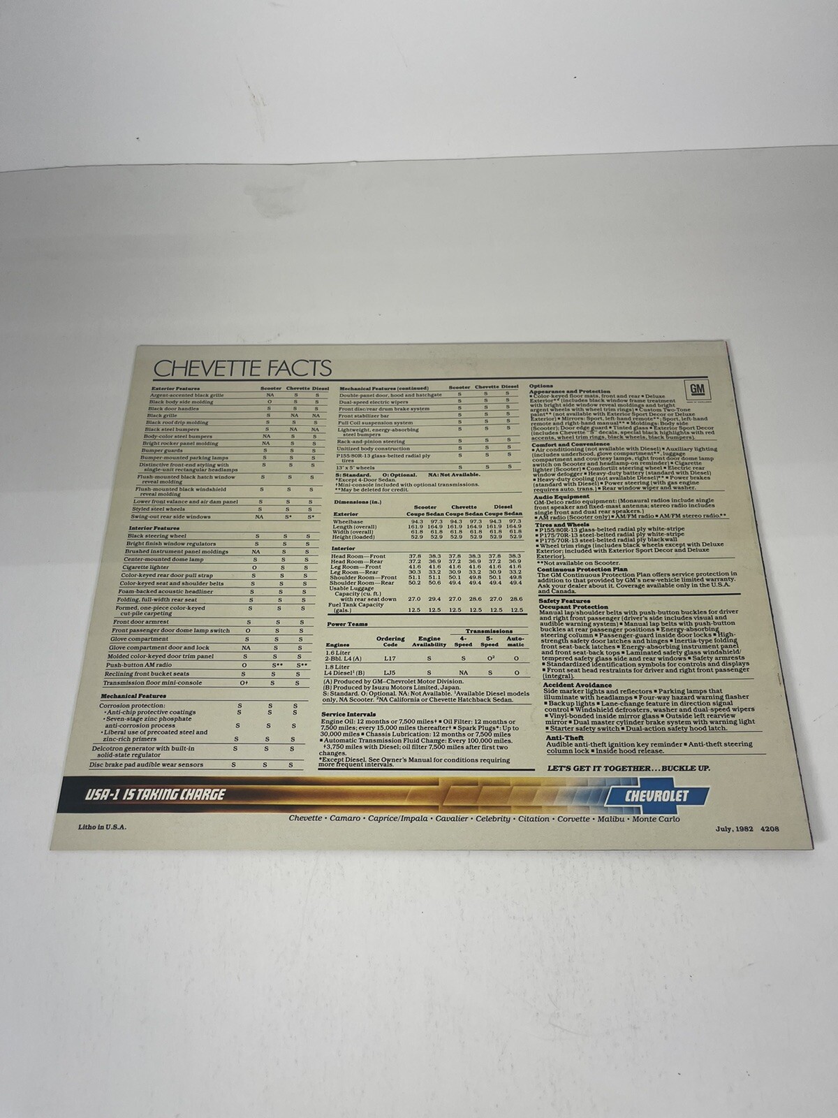 This 1983 Chevrolet Chevette Dealer Showroom Sales Brochure Catalog Booklet is a must-have for any Chevy enthusiast. The brochure features detailed information about the car's features, including its design, performance, and capabilities. It is a great resource for anyone looking to learn more about this classic vehicle. The brochure is in good condition and has been well preserved over the years. It includes beautiful illustrations and photographs that showcase the car's sleek design and features. This is a unique and valuable piece of automotive history that any Chevy fan would be proud to add to their collection. C9-3-23