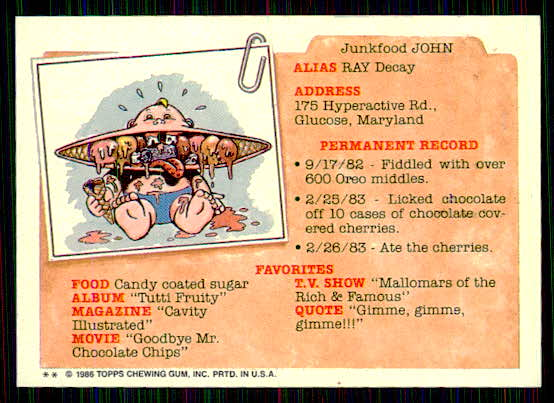1986 Garbage Pail Kids Series 5 Jean Machine #186b Collectible Card