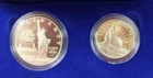Total Weight of both boxes & coins: 12.86 oz Condition: These are from a collection we purchased. These two US Mint Liberty Coins Commemorative Proof Set is in lightly aged condition - the four coins have some slight toning. Each Box is from the San Francisco Mint & Features a 90% silver content 1 Dollar Proof Coin & a nickel & copper content 50c proof coin. Please view all photos. If you are a resident of the State of Indiana, there will be a 7% sales tax on your invoice. **There are some States that have started charging sales tax for online purchases, ebay will automatically add the tax to your invoice. We cannot remove this tax. We are only authorized to ship to the confirmed address supplied from Ebay Items or combined items over $75.00 US will be shipped USPS Priority. Items over $1000.00 US will be shipped USPS Express. We ship from the Midwest, Monday through Thursday, 8:00AM to 11:00 AM Eastern Standard Time. Purchases made after business hours, weekends, and holidays will be processed the following business day. A tracking number will only be uploaded to ebay once the item has shipped. No changes can be made once payment is received. If a mistake occurs, we MUST cancel and refund the payment. You will have to repurchase the item (s) with the correct information on for your address and payment method. Multiple orders paid with multiple transactions will be shipped separately and will not qualify for the discounted shipping fees Payment is expected within 3 days of winning an item. If you are having a problem with payment, please contact us. We are happy to combine shipping on items - just wait to pay until you are done shopping and then we will send you a final invoice with a combined shipping discount. We require payment within 7 days after your first item was won. On any international packages valued at $50.00 or over, I will now only ship by Priority International Mail or Fed EX. A tracking number is provided for those services. Even if the package weighs less than 4 lbs, which qualifies for First Class International Mail shipping, I will ONLY ship via Priority International or Priority Flat Rate International mail. Ebay uses the tracking number to prove the item has been delivered. ***International Buyers Please check with your country's customs office to determine what these additional costs will be before bidding. These charges are normally collected by the delivering freight (shipping) company or when you pick the item up- do not confuse them for additional shipping charges. We do not mark merchandise values below value or mark items as "gifts" - US and International government regulations prohibit such behavior. Import duties, taxes and charges are not included in the item price or shipping charges. These charges are the buyer's responsibility .