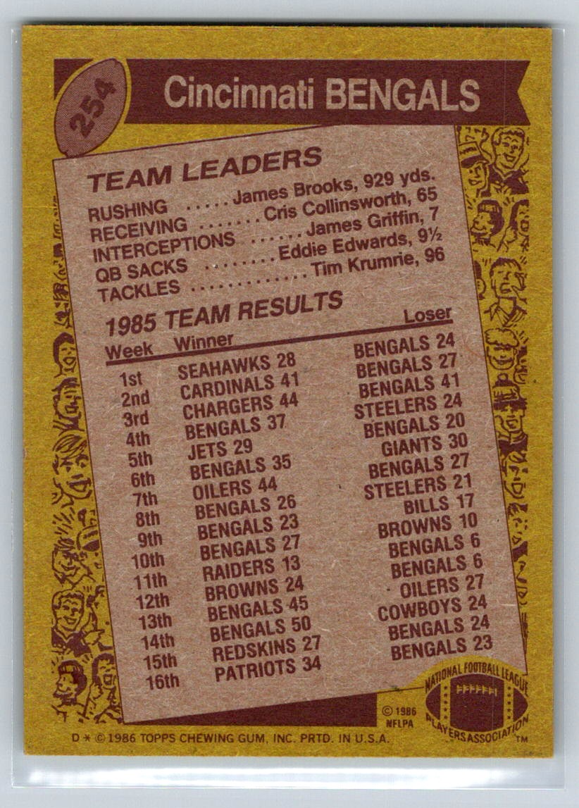 1986 Topps Bengals Team Leaders #254 Cincinnati Bengals [ BUY NOW or BEST OFFER] Payment We are following eBay’s updated Payment/Unpaid items rules. Payment for purchased items must be completed within 3 days. Shipping 1. We Will COMBINE SHIPPING! Please ask for an invoice prior to paying! 1. Packages are typically shipped within 24 hours of payment receipt (We attempt to make it a practice to ship Mondays & Thursdays for sure). 2. Please note, that once shipped, we have no control over the actual shipping time. You will receive an email stating when your item was shipped, and you will be given a tracking number, if requested. Terms of Sale 1. If for any reason you would like to return an item, please reach out to our store first. If you must, then go into your original sale on eBay and request a refund prior to returning the item. We follow eBay’s Money back guarantee. 2. When an item is returned, the item must arrive back to us in the same condition that it was sent to you. 3. Buyer is responsible for paying to ship the item back. IMPORTANT: Any item(s) that has a COA (Certification Of Authenticity) will say it has a COA in the title or description. If it does not say it has a COA, then the item does not come with a COA. About Junk Since 1993 A branch off “Papa Chubby Sports & Collectables” store on eBay. Junksince1993 started in January 2025. Our focus will be on customer service: excellent packaging and fast shipping. Our goal is 100% positive feedback - and we will do our best to provide items accurately described. If you have any issues or concerns we will get back to you as soon as possible. You may buy with confidence knowing that we are a reputable seller with over 20 years of experience and that we make our living selling on eBay and in our retail store. We do our best to describe everything to the best of our knowledge, we are not experts in all of the selling categories, so we will also rely on your research and personal knowledge for giving us factual information on the items that we sell to our eBay customers.