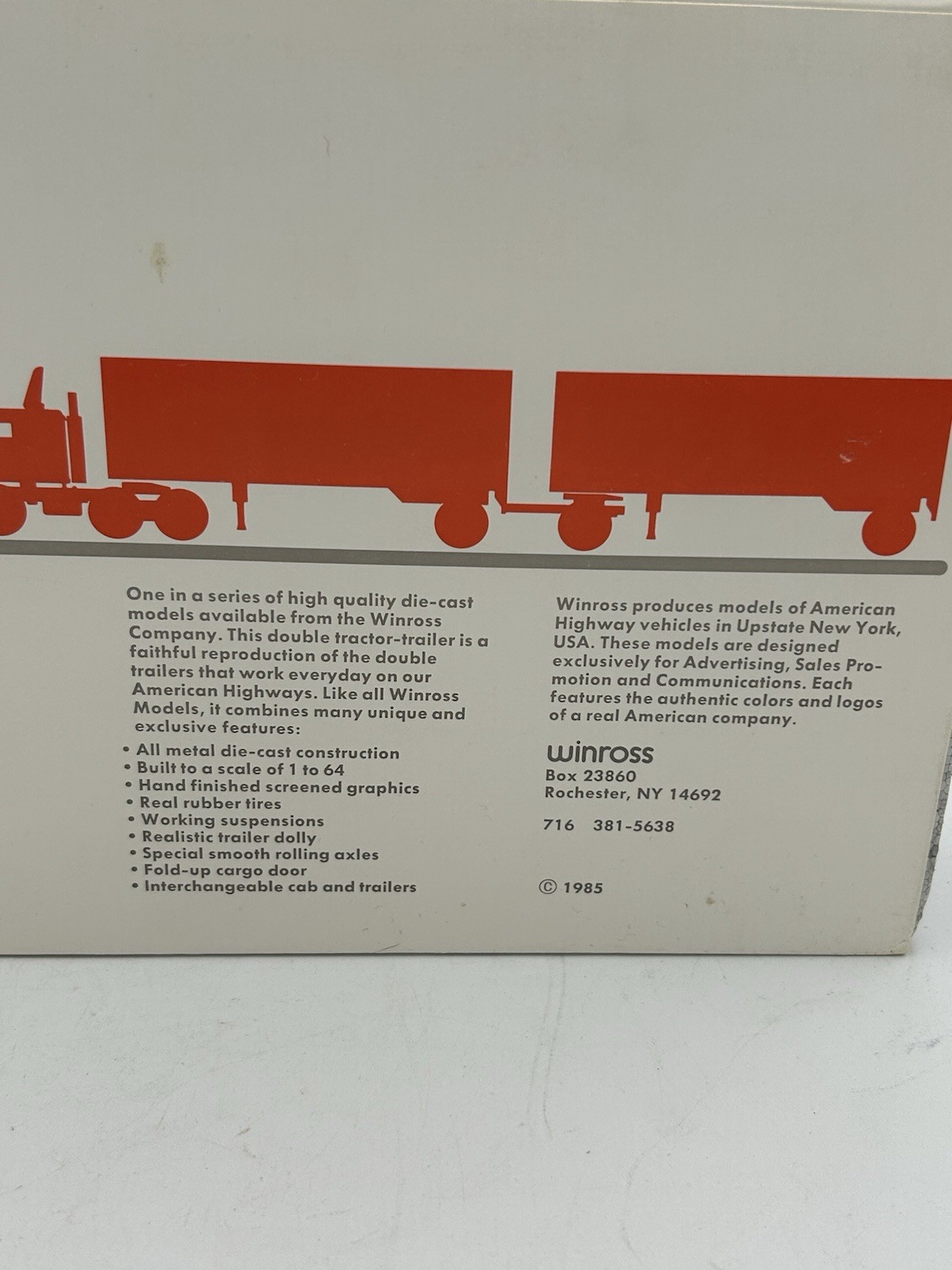 The Roadway Doubles '86 Winross Truck is a diecast model of a Ford 9000 semi-truck in 1:64 scale. This vintage toy vehicle features a multi-color design with advertising specimen and two detachable trailers, making it a unique addition to any toy collection. Made by Winross in the United States in 1986, this toy is perfect for both boys and girls who enjoy playing with trucks and exploring themes related to trucking and transportation. The Roadway Doubles '86 Winross Truck is a nostalgic piece that brings back memories of classic toy vehicles from the past. This item is perfect for collectors of trucking memorabilia or for those who drive trucks. Make us an offer and bring home this great piece or purchase it for a loved one.