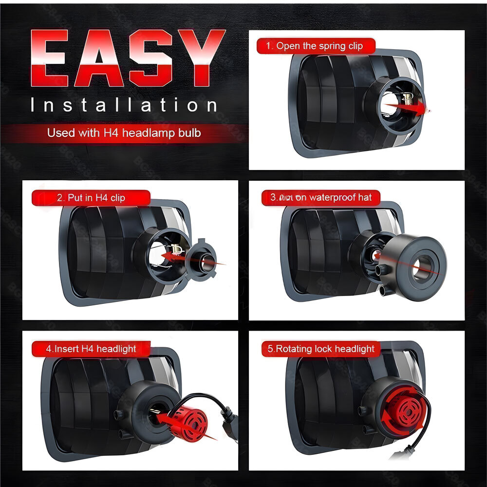 for Mazda RX-7 1986-1991 5x7" 7X6 inch LED Headlight Hi/Lo Beam H4 Lights 6000K Specs: Brand New in box! Universal Fitment for vehicles using 2PCS 7 inch lampshade Made with High Quality Glass Lenses - NOT cheap plastic! Improved appearance with Classic Cut design! Brighter than standard housings to Improve road visibility and safety! Direct Plug & Play design (certain vehicles will require slight modification) Professional Installation is highly recommended H4 LED Headlight Bulbs Key Features: 1. Designed to enhance your visibility and driving safety at night and bad weather. 2. Latest 4-side CSP LED light source, super bright without blind zone. 3. Efficient cooling system ensures maximum headlight performance and appropriate working temperature. 4. Built-in smart LED chip provides intelligent temperature control and allows for instant start. 5. IP67 waterproof and high temperature resistant, withstand extreme weather conditions. 6. Easy installation without any modification or additional wiring, plug and play. Compatible Models and Years: - Universal for most vehicles on the market like SUV, bus, truck, sedan, pickup, sport utility etc. Specifications: Condition: 100% Brand New Material: Aviation Aluminum Color Temperature: 6000K White Working Voltage: 12V Number of Bulbs: 2 Waterproof Rate: IP67 Working Temperature: -40℃ - +80℃ Bulb Type: H4 Beam Type: High Beam/ Low Beam Beam Angle: 360 Degrees Lifespan: Over 50,000 hours Heat Dissipation Principle: Heat Pipe Technology + Aluminum Radiator Fitment Type: Direct Replacement Placement on Vehicle: Front, Left, Right Parcel Content: 2PCS H4 LED Headlight Bulbs 2PCS 7 inch square Headlight Housing
