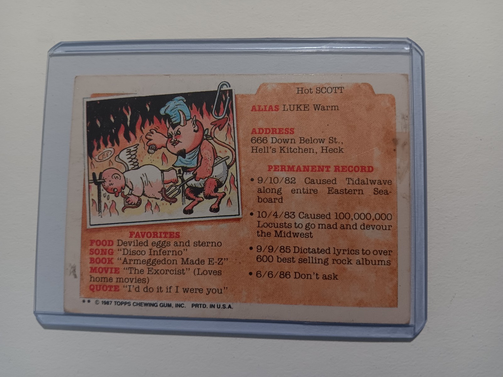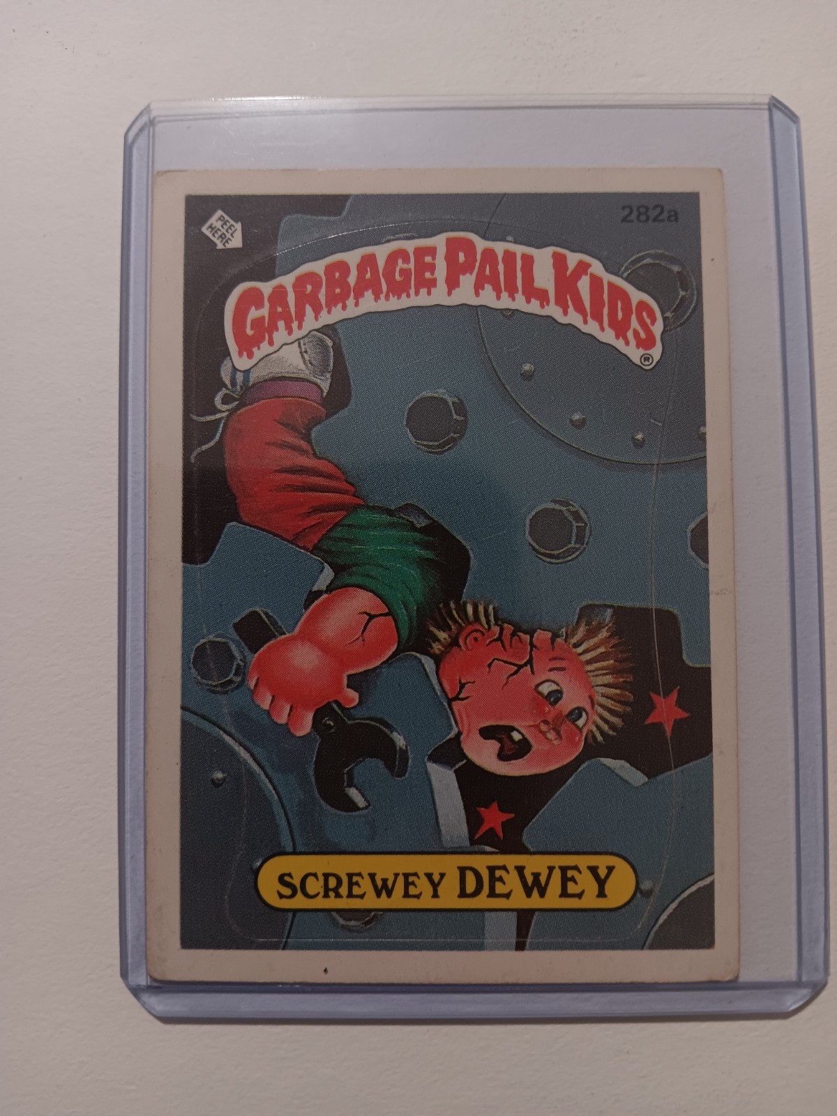 The product described is a 1987 Garbage Pail Kids trading card from Series 7, featuring characters Screwey Dewey and Bent Brent. Manufactured by Topps, part of the popular Garbage Pail Kids franchise, this non-sport trading card is a valuable collectible for fans of the series. With its unique and humorous design, this card is sure to be a prized addition to any trading card collection.