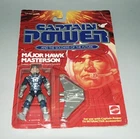ORIGINAL 1987 MATTEL CAPTAIN POWER MAJOR HAWK MASTERSON ACTION FIGURE UNOPENED ON CARD. THE CARD HAS SCATTERED CREASES. ALL AUCTIONS WILL RUN TO THEIR CONCLUSION. I AM SORRY BUT I DO NOT STOP ANY OF MY AUCTIONS EARLY, PLEASE DO NOT ASK. MESSAGES TO END AUCTIONS EARLY OR CHANGE TO BUY IT NOW'S WILL NOT BE RESPONDED TO. THANKS COMBINED SHIPPING is available. A ny second or more items are shipped free of charge, and you are only charged for one item won or purchased THAT DAY. If you would like to combine shipping for multiple days that is fine as long as it is done within one week. If package starts to become too large and/or too heavy, I may need to add a dollar or two to the total, but I assure you it wouldn't be much. I do not try to profit from shipping charges, just would like a little help with it. ********* PLEASE wait for me to send your combined shipping invoice in order to receive your shipping discount . If you do not wait to pay until receiving the invoice, it may not be possible to give you a discount........ Please follow directions, I am trying to make this enjoyable, convenient, and fun for us all. I usually ship within a few of days of receiving payment and try to get everything out as quickly as I can, as soon as possible, as I understand that you are all excited to receive your items. THERE ARE OCCASIONAL TIMES WHERE I MAY BE ATTENDING ANTIQUE SHOWS AND/OR ON BUYING TRIPS BUT I ASSURE YOU THAT I WORK ON SHIPPING AS QUICKLY AS I CAN. I DO SHIP WORLDWIDE FOR AN ADJUSTED FEE. Please refer to my outstanding feedback to assure you of my reliability. If you need any additional photos feel free to message me and let me know. Also, feel free to message me with any questions and I will be happy to try and help. I WILL GUARANTEE THE AUTHENTICITY OF ANY AUTOGRAPHS I SELL AND THAT IT WILL PASS ANY RESPECTED THIRD-PARTY AUTHENTICATION SERVICE. Check out the other items I have listed this week here on eBay. Thank you for the many years of business you have all provided. Take care.
