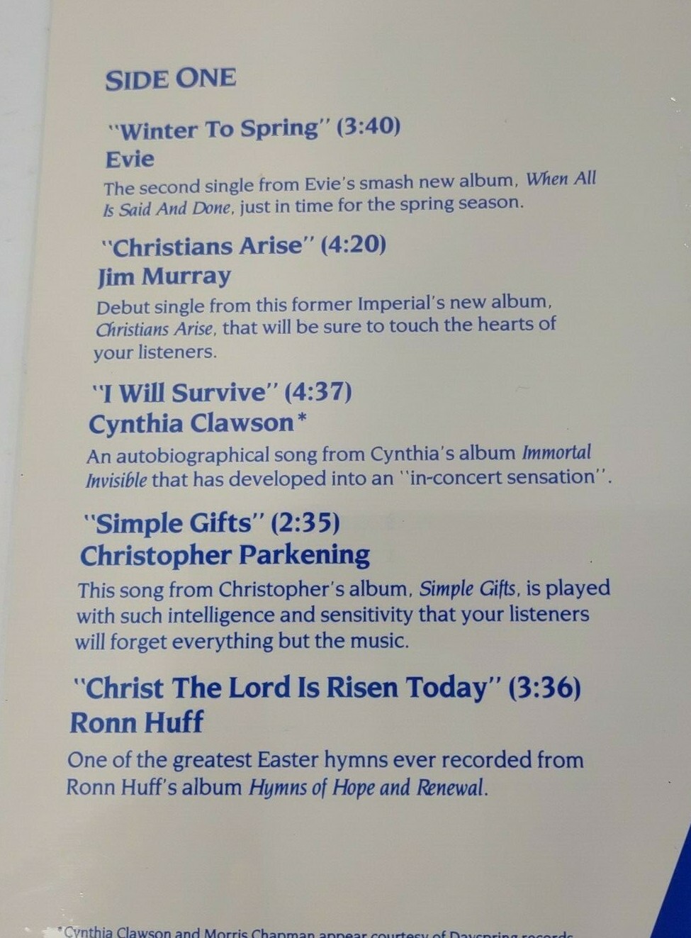Winter to Spring religious promo vinyl record Word records includes various artists brand new / sealed, never opened. released in 1987 would make a great addition to any record collection! Policies and Disclosures: RETURNS: Returns are accepted within 30 days of purchase. Buyer is responsible for return shipping. All items from this store come with an identification tag; Item(s) must be returned in original condition with the I.D. tag intact for a refund. SHIPPING: I do combine shipping when multiple items are purchased. In order to provide you with the least expensive price, you will need to send me a message requesting an invoice with combined shipping. CLOTHING: My goal is to sell only the finest quality new and gently used clothing items in my stores, and I strive for 100% satisfaction with every order. While my home is smoke-free, other pre-owned items from different sources cannot be guaranteed as smoke-free or pet-free. It is assumed that you as the buyer will be cleaning the garment once it arrives to you, so unless there is an obvious stain or odor, the clothing has not been laundered. I felt it was best left up to the buyer so no issues would surface regarding detergent allergies, shrinking, etc. Please note that any must or smoke odors can almost always be completely removed by adding 1 cup of distilled white vinegar to your normal wash cycle. I provide measurements on all my clothing items so that you, as the buyer, can make an informed decision about your purchase. Please use that information to compare it with a garment that fits you well to determine if the item will work for you. Seller will not assume responsibility for return postage on items that do not fit. COMMENTS: Please note that every item I sell is described to the best of my knowledge and ability, however, I am a human being, so occasionally I do make mistakes. Colors may vary slightly between screens and monitors. Sizing can vary from brand to brand. If you have any questions about the item(s), free to ask and I will do my best to get back with you in a timely manner. If you have any issues with your purchase, please do not hesitate to contact me prior to leaving negative feedback so we can try to resolve the issue. I am flexible and easy to work with. If you see something you are interested in, feel free to make a reasonable offer! (On a side note: Lowball offers are insulting and will be declined.) Take a moment to browse my other items for sale. I offer a large variety of items, with new items daily, so there’s something for everyone! Thanks so much for taking the time to look and have a wonderful day!