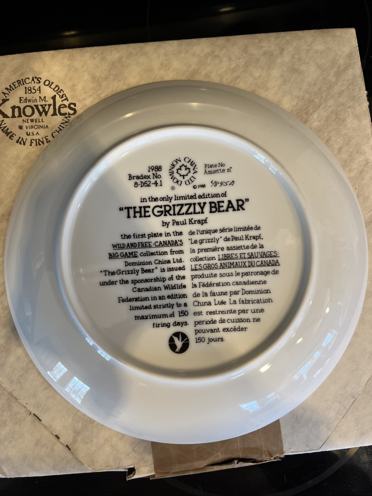 1988 Dominion China “The Grizzly Bear” Paul Krapf Limited Edition W/COA Og box