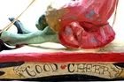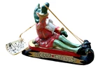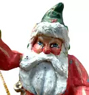 This is a wonderful House of Hatten Santa with Sleigh/Sled. It is from my personal collection and was purchased in 1988. It has the impressed mark on the bottom stating HOUSE OF HATTEN @ 1988. It was designed by Denise Calla for her Enchanted Forest series. The piece is very showy. On the right hand side of Santa are small metal bells wired around his waist. The side of the sleigh reads---GOOD CHEER. Santa is beautifully hand painted and was quite expensive at the time of purchase. This would make a fantastic addition to anyone's SANTA COLLECTION. Previously owned. No damage. Comes with original tag. Please look at the pictures as they are part of the description. Measures 5" x 65" x 2.25"