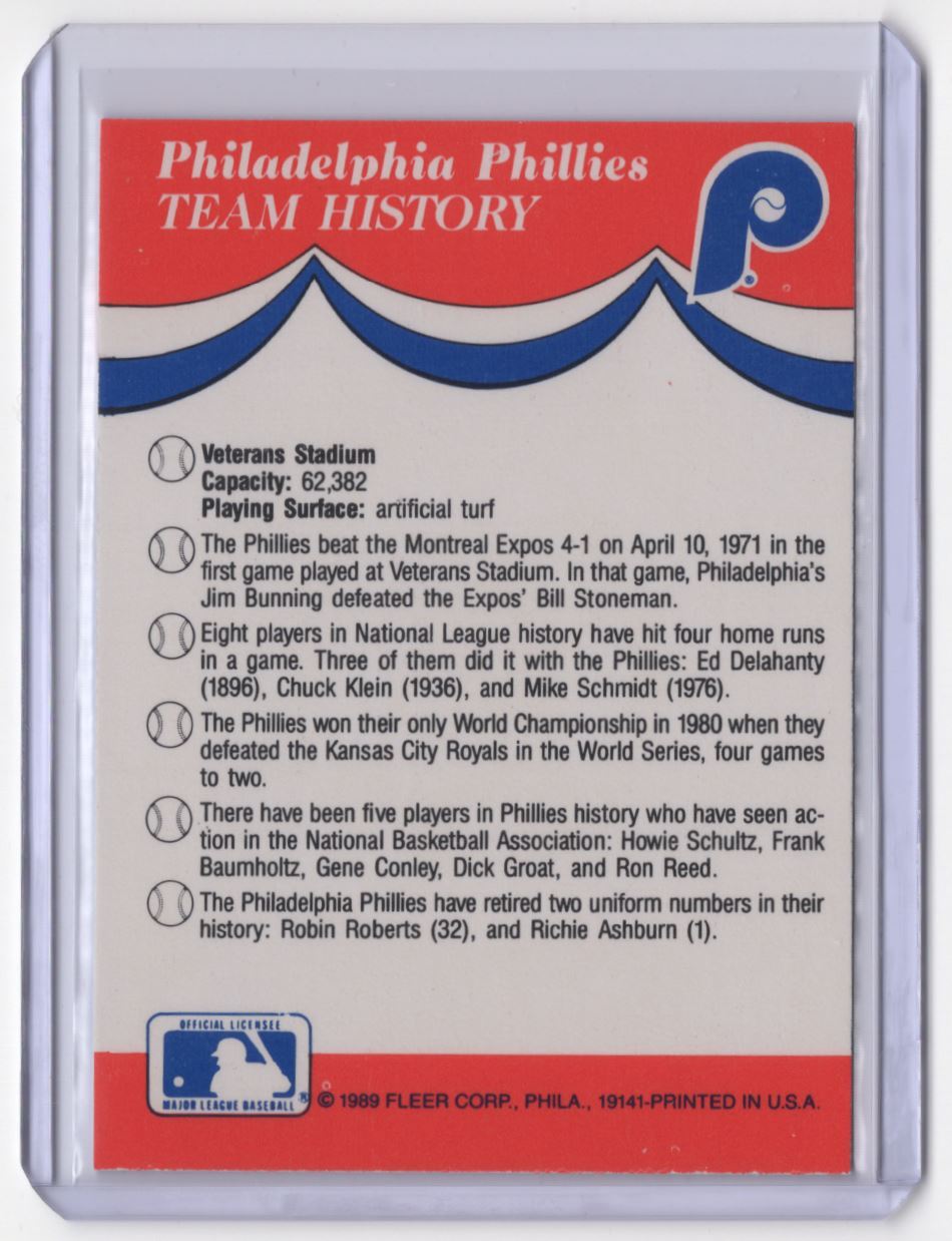 Amazing vintage Phillies sticker from the 1989 Fleer set—crisp colors and great condition! Perfect for collectors, this classic piece captures the team’s spirit. Fast shipping and great packaging make buying hassle-free. A must-have for any baseball memorabilia enthusiast!