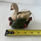 Add a classic touch of the holiday season to your décor with this 1989 House of Hatten 12 Days of Christmas Ornament. Designed by Denise Calla, this medium-sized rustic-style resin ornament depicts Six Geese A Laying from the classic holiday song. The multicolored vintage ornament measures 4" in height, 3" in width, and 3" in depth, making it perfect for hanging on your Christmas tree or displaying in your home. This original House of Hatten creation is part of the 1989 12 Days of Christmas collection and was manufactured in the Philippines. Celebrate the holiday season with this charming addition to your collection. Good used condition. Please see pictures. HH12