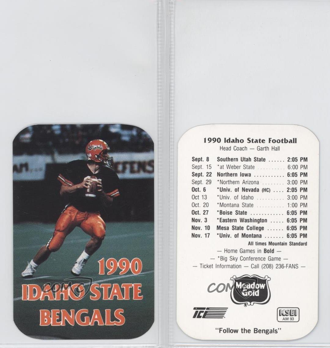 1990 Idaho State Bengals - Football Team Schedules #ISBE Idaho State Bengals - Rookie - Publications - Featuring the Idaho State Bengals - Featuring Idaho State Bengals Search for more: 1990 Idaho State Bengals Search for more: 1990 Idaho State Bengals - Football Team Schedules View all of our Listings Auctions Buy It Now About Us Located in the beautiful Pacific Northwest, COMC (Check Out My Cards) is the world's largest consignment service for trading card singles. More than 10,000 people have used our consignment service to list over 50 million trading cards. We currently house 20 million cards, each listed for sale with front and back images of the actual card. Find out how we can help you consign your items on eBay by contacting us through eBay messaging. COMC -- "The Safe & Easy Way to Buy & Sell" Representative Image - Select Specific Item above to see image of actual item Representative Image - Select Specific Item above to see image of actual item Raw Condition for Modern Cards Unless otherwise noted, raw modern cards are listed in Near Mint-Mint condition or better. A NM-MT card appears to be Mint at first glance, but upon closer inspection, may exhibit some of the following: minor print defects (e.g. roller marks, print line, dimple), minor scratches, slight edge wear, and slight corner wear. Centering is clearly visible in the images provided and does not factor into our condition assessment. Raw Condition for Vintage Cards Unless otherwise noted, raw vintage cards are listed in Excellent condition or better. An EX card may exhibit some of the following: minor rounding of corners, surface wear, print defects, light scratches, and slight edge wear/chipping. Centering is clearly visible in the images provided and does not factor into our condition assessment. Domestic Shipping Combined shipping for multiple items is available. To receive combined shipping, please ensure all desired items are in your eBay shopping cart before proceeding to checkout. eBay limits orders to 40 items per order. We automatically combine multiple orders placed on the same day. If you place multiple orders on the same day, please contact us to request a refund of applicable shipping costs. Signature confirmation may be required on invoices over $400. Raw cards are shipped in toploaders. International Shipping COMC offers eBay's International Shipping (EIS) for international orders under $2,500* (see country exceptions below). All duties and import fees are paid at checkout; in the rare event that there are additional import fees upon delivery, these are borne by the buyer. EIS packages route through a shipping hub in Erlanger, KY before shipping to their final destination. Please note that EIS does not allow for combined shipments. The shipping rates are determined by eBay and cannot be adjusted. *Maximum sale price exceptions: Colombia, Kuwait ($2,000); Taiwan ($1,539); Chile, Costa Rica, Guatemala, Honduras, Trinidad and Tobago ($1,000); Antigua and Barbuda, Aruba, Belize, Dominica, Grenada, Philippines, Saint Kitts and Nevis, Saint Lucia, Montserrat, Turks and Caicos Islands ($500); Dominican Republic, El Salvador ($200). Please request a shipping quote through eBay messaging for orders that exceed the maximum sale price supported by eBay's International Shipping. You will be responsible for all duties and import fees for international orders shipped outside the EIS. Raw cards are shipped in toploaders. Payment COMC does not accept offers on our cards through our eBay storefront. COMC utilizes eBay’s managed payments system. If you are experiencing difficulties making a payment, please contact eBay for assistance. Return Policy Returns are only accepted on the rare occasion the item is not as described. If you are making a return, please initiate the return process through eBay so a mailing label can be provided for you. Prior to listing, our expert team carefully assessed this item to represent it accurately. Please review the description and high-definition images prior to purchasing to ensure this item meets your satisfaction. We welcome you to contact us if you have further questions about this item. Trust and Integrity COMC carefully assesses each item consigned to us to prevent fraudulent items from entering the marketplace. If you believe an item offered on COMC may be fraudulent, please contact us with details so we can investigate the issue. Items we determine are outside our supported items policy may be removed. Last Modified: 11/6/2024 1:34:03 AM PDT