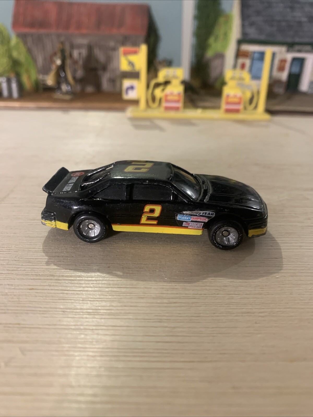 The Rusty Wallace AC Spark Plugs #2 NASCAR Die Cast Car is a vintage 1990 model produced by Racing Champions. This high-quality die-cast car features intricate detailing, making it a collectible item for fans of NASCAR and die-cast vehicles. The car is a replica of the vehicle driven by Rusty Wallace in the 1990 NASCAR season, showcasing the iconic AC Spark Plugs branding on the sleek design of an AC car. Perfect for collectors and fans of vintage racing memorabilia, this die-cast car captures the essence of NASCAR history. Used cond