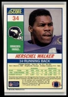 This 1990 Score sports trading card features Herschel Walker of the Dallas Cowboys, card number 34. The card measures 4¼" x 3" and is made of high-quality card stock material. It is an original, licensed reprint from the 1990 Score set and has not been autographed or signed by the player. This vintage card is perfect for collectors of sports memorabilia and fans of football. It is a great addition to any collection and would make a fantastic gift. Get your hands on this rare item today!