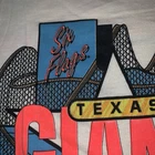 Crafted by American Marketing Works, this vintage white T-shirt celebrates the iconic 1990 Six Flags Texas Giant Roller Coaster with a bold graphic that captures the thrill of the ride. The tee is designed as a regular fit, size large, tailored to provide comfort for everyday wear or weekend adventures. The shirt features short sleeves, making it a perfect choice for warmer weather or layering under a jacket. With its timeless appeal and classic flag theme, this piece is a versatile addition to any wardrobe, sure to be a conversation starter for enthusiasts of vintage Americana and thrill ride memorabilia alike.