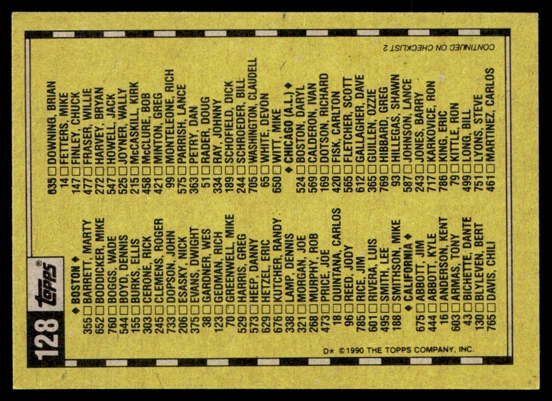 Just got this 1990 Topps Checklist #128 and it’s in great condition! The scan matches exactly what arrived—no surprises. Perfect for completing my set. Fast shipping and well-packaged. Highly recommend for any collector!