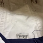 This is a rare vintage L.L. Bean Boat and Tote shoulder bag from the 1990s. The bag features a nautical sailboat print in navy blue and cream color, with double drop handles in navy canvas and off-white trim. The bag is made of heavy duty canvas material and has a zippered top closure. It also includes an internal secure key ring and a key holder accessory. This original nautical tote bag has a rectangular square shape and measures 8.0” in width, 12-1/2” in height, and 12.0” in depth. The bag has a medium/large size and a strap drop of roughly 10.0”. The hardware color is antique finish brass and the bag is designed for travel, casual, workwear, and business occasions. The lining material is also 100% cotton canvas and the bag is clean from smoke & pet free environment.