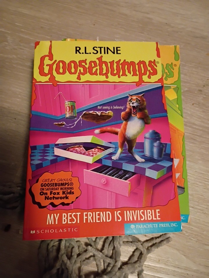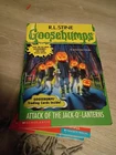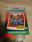you get my best friend is invisible, the haunted school, the beast from the east, monster blood 4, say cheese and die again calling all creeps, attack of the jack-o'-lanterns, don't go to sleep, deep trouble too hard to find rare, chicken, how to kill a monster, and then the collection monster edition number 3 which will be pictured the books are an amazing condition the Cuckoo clock of Doom is a little rough there's a few bins but overall the covers look great the spines look great DVDs all look really pretty good they are untested but the two pack looks pretty good playable for sure step inside if you dare scary house DVD looks good the deep trouble one however is a little scratched up and I don't think it will play and then cry the cat is a little scratched but looks good you also get the large book 10 Goosebumps which is hard to find as well get these all together somewhere else you can't this is a heck of a bundle with rare books