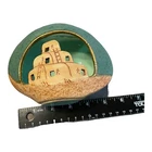 This beautiful and unique vase is a one-of-a-kind piece of art. The vase features a lovely Southwestern design with a blue and brown color scheme. The vase is made of high-quality clay and has intricate carvings and hand-painted details that make it stand out from other pottery. The vase measures 6 inches in height and has a width of 6 inches. The vase is a vintage original piece that was handmade in the United States in 1990. The vase has a matte finish and features a lovely cactus and Adobe house cactus scenery. The vase is an Arts & Crafts/Mission Style piece and has a backstamp that is impressed. This vase is perfect for anyone who loves nature, art, and natural history, and is a great addition to any collection. Set of 2
