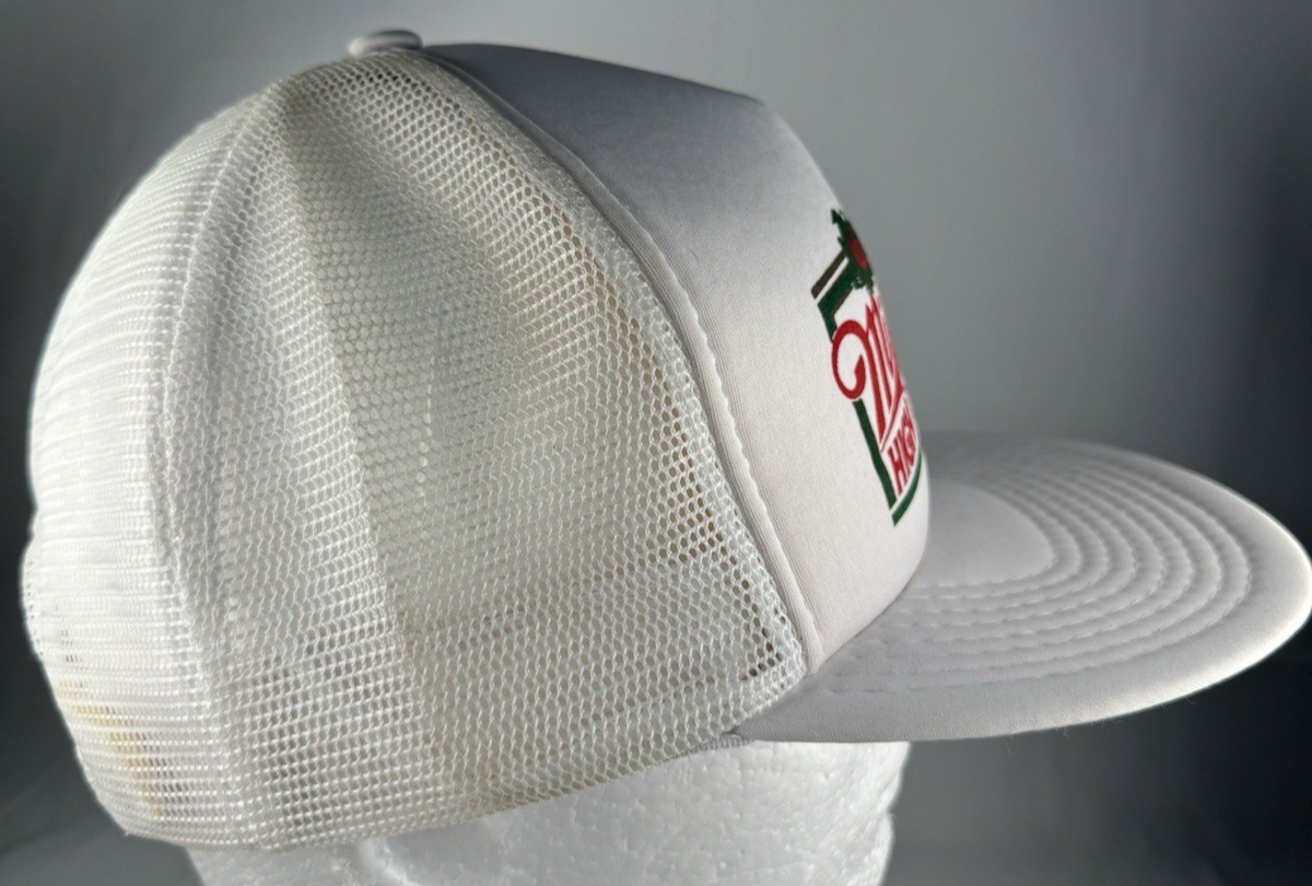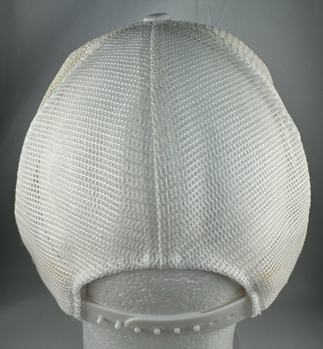 Product Details: Please see pictures and description for any Imperfections / Sizing (Measurements) Item is in great overall condition with minor signs of use or wear. Slight yellowing from storage on the mesh backing! Also, a small pen sized stain on the top of the hat, pictured! All components are intact and functional. Please refer to the photos for a more detailed visual assessment. This item will be shipped in a box for added protection! Please read through return policy and shipping date. If you have any questions or concerns, please ask! Thank you!