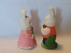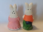 Spice up your kitchen with these adorable ceramic salt and pepper shakers shaped like a cute bunny couple. Perfect for all occasions, these novelty shakers feature a multicolor floral design that will add a touch of spring to your dining table. Measuring at 4 inches in height and weighing only 6 ounces, these shakers are small and easy to use. The set includes both a pepper shaker and a salt shaker, making it a great addition to any kitchen or collection. Manufactured in China during the 1990s, these shakers are a seasonal theme and a must-have for collectors. Get your hands on these charming shakers today and add a bit of whimsy to your table setting.