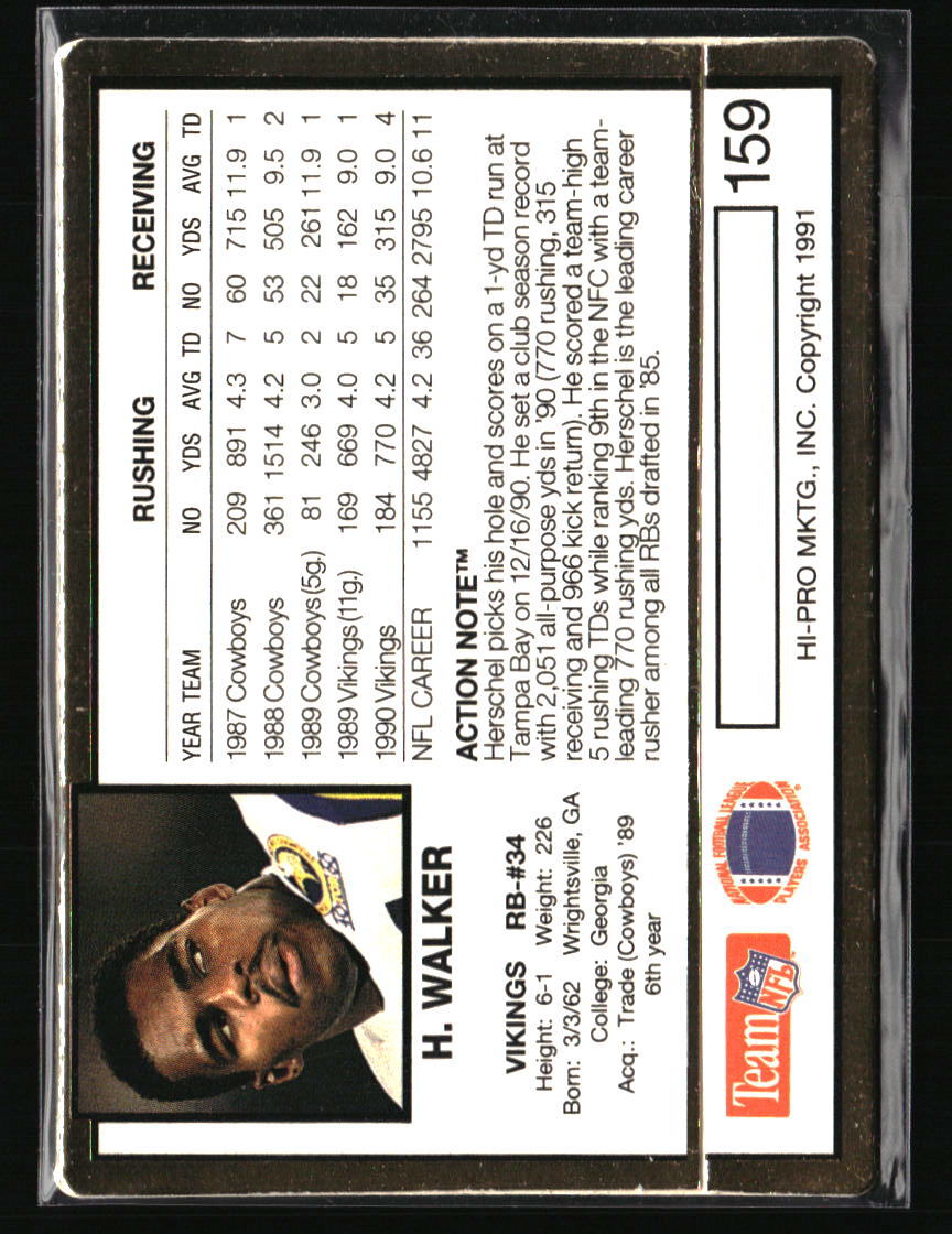 Player/Athlete: Herschel Walker Team: Minnesota Vikings Autographed: No Set: Action Packed Type: Sports Trading Card Graded: No Card Number: 159 Manufacturer: Action Packed Year Manufactured: 1991 Sport: Football Season: 1991 League: NFL