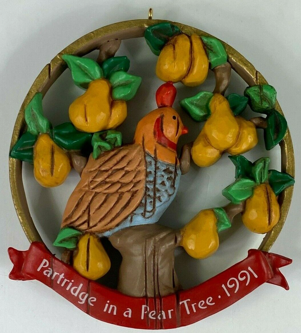 HALLMARK KEEPSAKE ORNAMENT PARTRIDGE IN A PEAR TREE HANDCRAFTED VINTAGE 1991 CELEBRATE THE HOLIDAYS WITH A VERY FUN HALLMARK VINTAGE ORNAMENT THIS FEATURES A HANDCRAFTED HIGHLY DETAILED HAND PAINTED PARTRIDGE IN A PEAR TREE ORNAMENT OVER 30 YEARS OLD AND THE ORNAMENT LOOKS NEW VERY SOLID, HEAVY RESIN ORNAMENT APPROXIMATELY 3.25" IN LENGTH THIS IS VINTAGE AND RETIRED 🎇 THE BOX IS IN GOOD SHAPE, MINOR SHELF WEAR SMALL 1" CREASE ON THE LID, SOME WEAR ON THE TOP RIGHT CORNER A CREASE ON THE TOP RIGHT FRONT CORNER ABOUT AN INCH LONG PLEASE SEE PICS THE ORNAMENT IS PERFECT✨ WOULD MAKE A GREAT GIFT OR TO ADD TO YOUR COLLECTION Will ship to you with great care. Will ship to the United States and Protectorates via USPS International shipments will ship via Ebay's Global Shipping Program (GSP) International packages will ship within one business day to eBay's GSP. eBay's GSP will then ship the package internationally. Handling and Shipping times may vary with GSP. Brought to you by The VinKris Collection