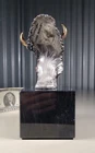 1991 KITTY CANTRELL Legends Wildlife Sculpture-BUFFALO-Plains Monarch DIMENSIONS: Overall: 8" tall x 5" deep x 3 3/4" wide. Weight: 8 lbs. DESCRIPTION: Vintage limited edition wildlife sculpture by KITTY CANTRELL. "Plains Monarch". Buffalo bust. "Legends" series. #275 from and edition of 950. Mixed media cast metal on a marble base with felted bottom. All original. Maker's marks: "K. Cantrell - Plains Monarch - Legends - ©1991 - 275/950 - U.S.A." in casting; gold foil label on bottom with an additional number stamp (illegible). No literature or original packaging is included. I recently acquired this sculpture from the original owner. CONDITION: Some very light handling wear: a few scattered miniscule edge rubs to the marble base. See photos. Nothing significant / conspicuous. Presumably the sculpture is secured with a nut on threaded rod underneath the felt. It isn't at all conspicuous when sitting, but when you pick the sculpture up it feels as if the nut isn't absolutely tight (but not so loose that the sculpture turns on its base). Otherwise excellent original condition with no damage and no significant wear. No restorations / repairs / touch ups. No chips, flakes, nicks, breaks, cracks, losses. No scratches, scuffs, bruises. No significant rubs. Very clean as found. No stains or discolorations. No oxidation, corrosion, etc. From a smoke free home. Condition is consistent with infrequent, careful handling.Excellent original condition.