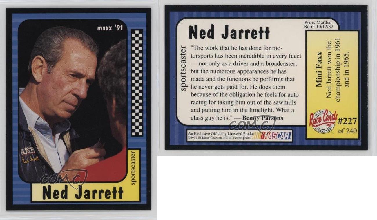 1991 Maxx Collection - [Base] #227 Ned Jarrett - Racing Card - Featuring the NASCAR - Featuring Ned Jarrett Search for more: 1991 Maxx Collection Search for more: 1991 Maxx Collection - [Base] View all of our Listings Auctions Buy It Now About Us Located in the beautiful Pacific Northwest, COMC (Check Out My Cards) is the world's largest consignment service for trading card singles. More than 10,000 people have used our consignment service to list over 50 million trading cards. Find out how we can help you consign your items on eBay by contacting us through eBay messaging. COMC -- "The Safe & Easy Way to Buy & Sell" Representative Image - Select Specific Item above to see image of actual item Representative Image - Select Specific Item above to see image of actual item Raw Condition for Modern Cards Unless otherwise noted, raw modern cards are listed in Near Mint-Mint condition or better. A NM-MT card appears to be Mint at first glance, but upon closer inspection, may exhibit some of the following: minor print defects (e.g. roller marks, print line, dimple), minor scratches, slight edge wear, and slight corner wear. Centering is clearly visible in the images provided and does not factor into our condition assessment. Raw Condition for Vintage Cards Unless otherwise noted, raw vintage cards are listed in Excellent condition or better. An EX card may exhibit some of the following: minor rounding of corners, surface wear, print defects, light scratches, and slight edge wear/chipping. Centering is clearly visible in the images provided and does not factor into our condition assessment. Domestic Shipping Combined shipping for multiple items is available. To receive combined shipping, please ensure all desired items are in your eBay shopping cart before proceeding to checkout. eBay limits orders to 40 items per order. We automatically combine multiple orders placed on the same day. If you place multiple orders on the same day, please contact us to request a refund of applicable shipping costs. Signature confirmation may be required on invoices over $400. All cards are protected and shipped securely. International Shipping COMC offers eBay's International Shipping (EIS) for international orders under $2,500* (see country exceptions below). All duties and import fees are paid at checkout; in the rare event that there are additional import fees upon delivery, these are borne by the buyer. EIS packages route through a shipping hub in Erlanger, KY before shipping to their final destination. Please note that EIS does not allow for combined shipments. The shipping rates are determined by eBay and cannot be adjusted. *Maximum sale price exceptions: Colombia, Kuwait ($2,000); Taiwan ($1,539); Chile, Costa Rica, Guatemala, Honduras, Trinidad and Tobago ($1,000); Antigua and Barbuda, Aruba, Belize, Dominica, Grenada, Philippines, Saint Kitts and Nevis, Saint Lucia, Montserrat, Turks and Caicos Islands ($500); Dominican Republic, El Salvador ($200). Please request a shipping quote through eBay messaging for orders that exceed the maximum sale price supported by eBay's International Shipping. You will be responsible for all duties and import fees for international orders shipped outside the EIS. All cards are protected and shipped securely. Payment COMC does not accept offers on our cards through our eBay storefront. COMC utilizes eBay’s managed payments system. If you are experiencing difficulties making a payment, please contact eBay for assistance. Return Policy Returns are only accepted on the rare occasion the item is not as described. If you are making a return, please initiate the return process through eBay so a mailing label can be provided for you. Prior to listing, our expert team carefully assessed this item to represent it accurately. Please review the description and high-definition images prior to purchasing to ensure this item meets your satisfaction. We welcome you to contact us if you have further questions about this item. Trust and Integrity COMC carefully assesses each item consigned to us to prevent fraudulent items from entering the marketplace. If you believe an item offered on COMC may be fraudulent, please contact us with details so we can investigate the issue. Items we determine are outside our supported items policy may be removed. Last Modified: 7/11/2025 10:28:56 AM PDT