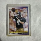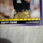 The 1991 Score Brett Favre #611 Rookie Card features the NFL Hall of Famer when he played for the Atlanta Falcons. This National Football League trading card is from the 1991 Score Rookies set and is in near mint condition or better. It showcases Favre during his early career with the Falcons and also includes his college team, the Southern Miss Golden Eagles, as well as his later team, the Green Bay Packers.