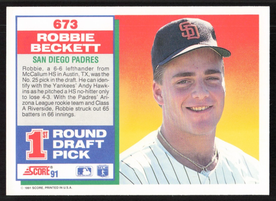 1991 Score Robbie Beckett Rookie Card #673 San Diego Padres