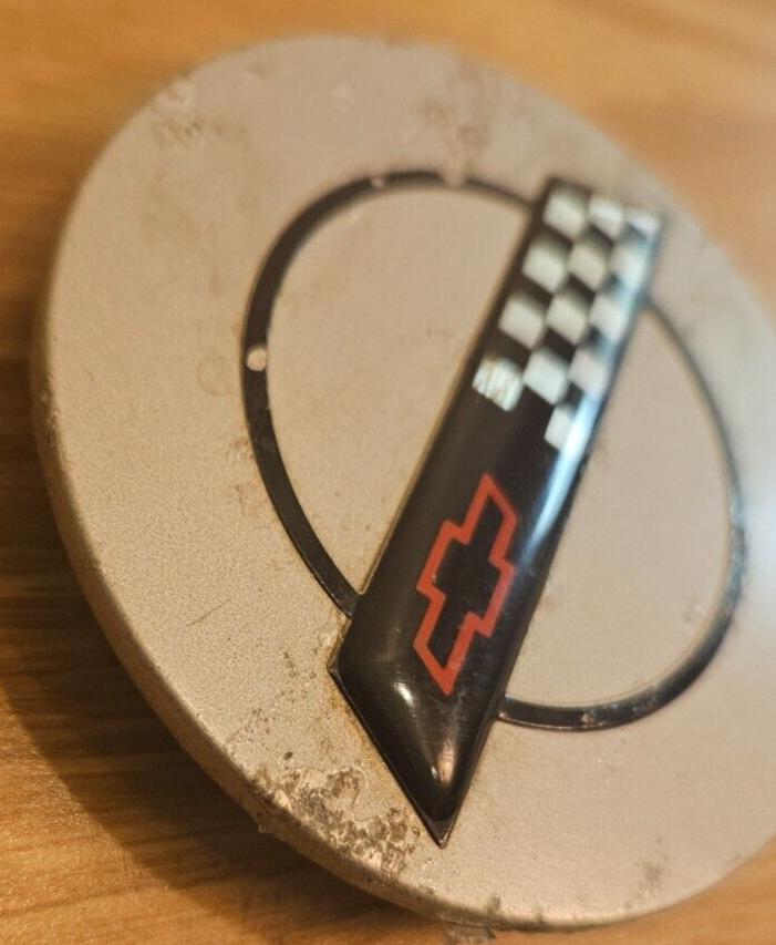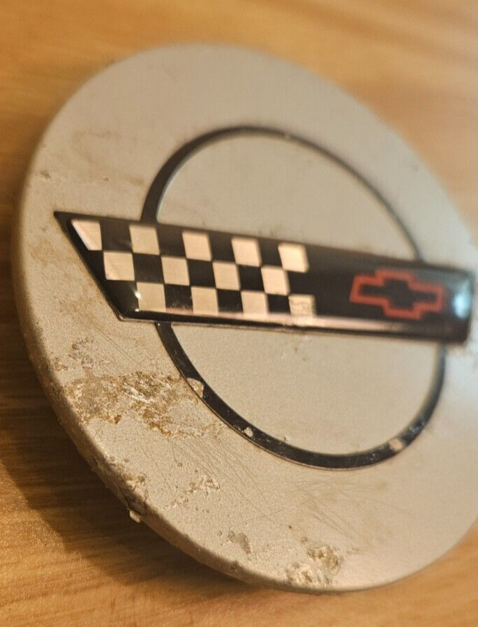 1991-1996 Chevrolet Corvette Silver Wheel Center. Has some pretty serious wear and I would recommend more for a decoration than use on a vehicle. Could be a cheap replacement for a project car if need be. Mostly deep scratches on the surface, but has some minor scratches and some signs of delamination on the logo as well. No major damage such as cracks or broken parts. See photos for better details! Could be reused as all of the mounting tabs are intact! P/N - 10137865 Any questions? Feel free to ask! *Quarter for scale, not included in sale