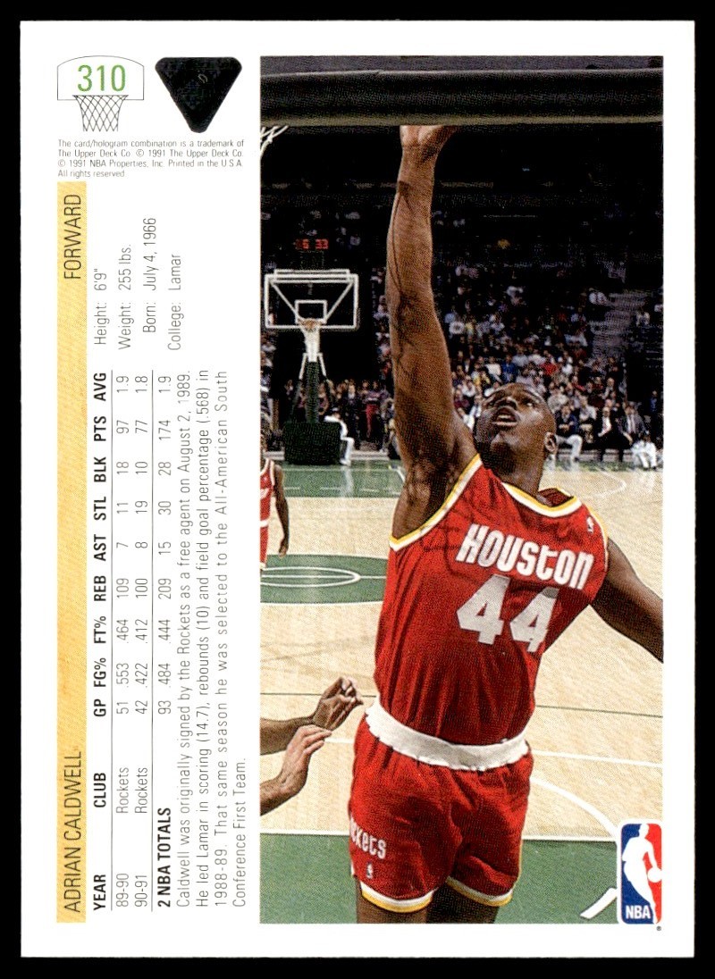 This Adrian Caldwell rookie card is a must-have for Rockets fans and collectors! The crisp design and sharp image capture the essence of early '90s basketball nostalgia. The card is in great condition, and the real scan shows every detail clearly—no stock photo here. A solid addition to any NBA or Upper Deck collection!