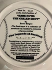 This collector plate features the legendary Babe Ruth and the Called Shot incident, making it a must-have for any baseball fan. Produced in 1992 by B.P. Benger, this original piece showcases the iconic New York Yankees player in stunning detail. The plate is in vintage state and has not been modified. It is a great addition to any sports memorabilia collection.