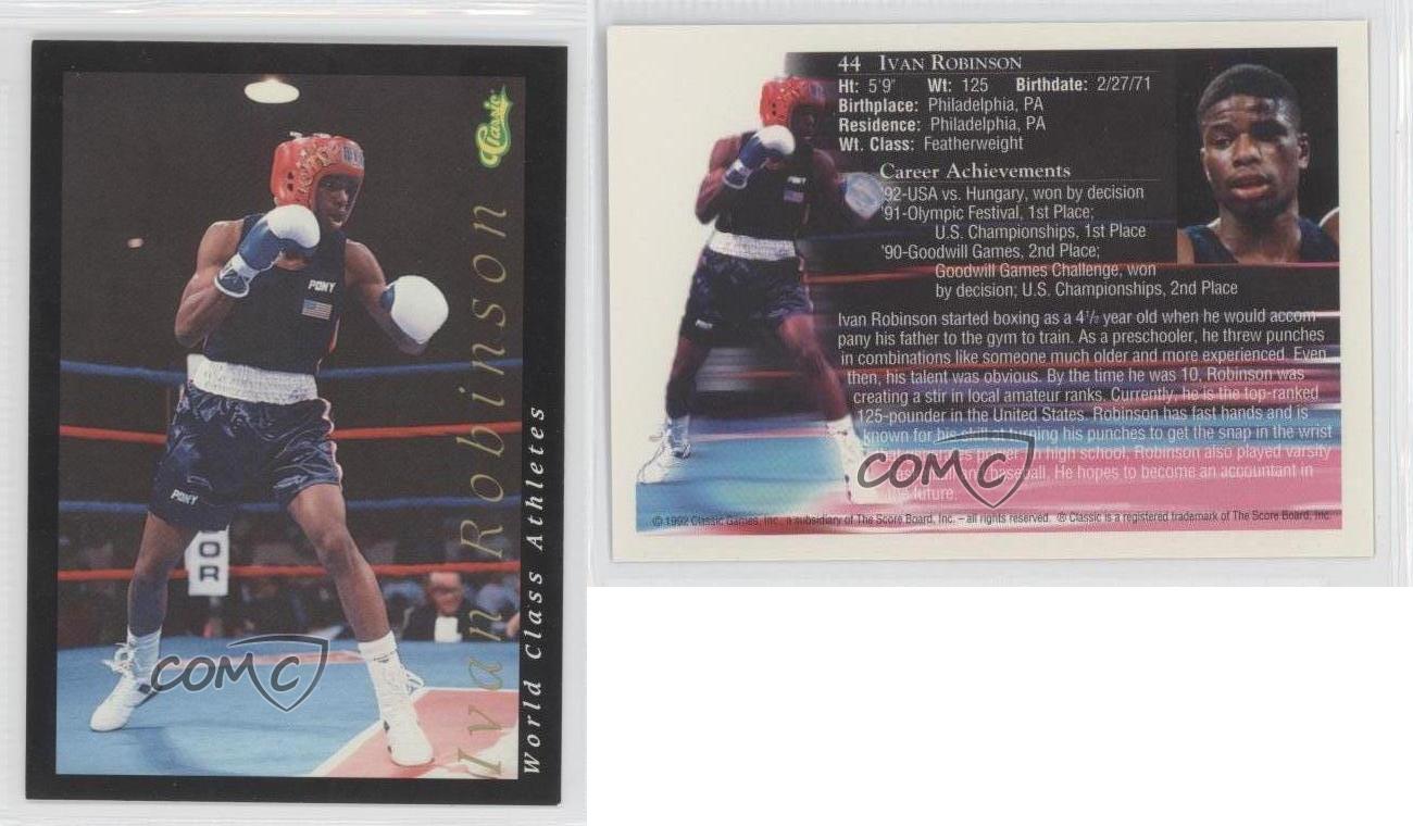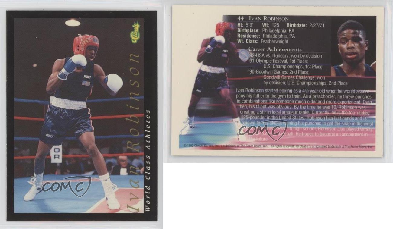 1992 Classic World Class Athletes - [Base] #44 Ivan Robinson - MultiSport Card - Featuring the Team USA - Featuring Ivan Robinson Search for more: 1992 Classic World Class Athletes Search for more: 1992 Classic World Class Athletes - [Base] View all of our Listings Auctions Buy It Now About Us Located in the beautiful Pacific Northwest, COMC (Check Out My Cards) is the world's largest consignment service for trading card singles. More than 10,000 people have used our consignment service to list over 50 million trading cards. We currently house 20 million cards, each listed for sale with front and back images of the actual card. Find out how we can help you consign your items on eBay by contacting us through eBay messaging. COMC -- "The Safe & Easy Way to Buy & Sell" Representative Image - Select Specific Item above to see image of actual item Representative Image - Select Specific Item above to see image of actual item Raw Condition for Modern Cards Unless otherwise noted, raw modern cards are listed in Near Mint-Mint condition or better. A NM-MT card appears to be Mint at first glance, but upon closer inspection, may exhibit some of the following: minor print defects (e.g. roller marks, print line, dimple), minor scratches, slight edge wear, and slight corner wear. Centering is clearly visible in the images provided and does not factor into our condition assessment. Raw Condition for Vintage Cards Unless otherwise noted, raw vintage cards are listed in Excellent condition or better. An EX card may exhibit some of the following: minor rounding of corners, surface wear, print defects, light scratches, and slight edge wear/chipping. Centering is clearly visible in the images provided and does not factor into our condition assessment. Domestic Shipping Combined shipping for multiple items is available. To receive combined shipping, please ensure all desired items are in your eBay shopping cart before proceeding to checkout. eBay limits orders to 40 items per order. We automatically combine multiple orders placed on the same day. If you place multiple orders on the same day, please contact us to request a refund of applicable shipping costs. Signature confirmation may be required on invoices over $400. Raw cards are shipped in toploaders. International Shipping COMC offers eBay's International Shipping (EIS) for international orders under $2,500* (see country exceptions below). All duties and import fees are paid at checkout; in the rare event that there are additional import fees upon delivery, these are borne by the buyer. EIS packages route through a shipping hub in Erlanger, KY before shipping to their final destination. Please note that EIS does not allow for combined shipments. The shipping rates are determined by eBay and cannot be adjusted. *Maximum sale price exceptions: Colombia, Kuwait ($2,000); Taiwan ($1,539); Chile, Costa Rica, Guatemala, Honduras, Trinidad and Tobago ($1,000); Antigua and Barbuda, Aruba, Belize, Dominica, Grenada, Philippines, Saint Kitts and Nevis, Saint Lucia, Montserrat, Turks and Caicos Islands ($500); Dominican Republic, El Salvador ($200). Please request a shipping quote through eBay messaging for orders that exceed the maximum sale price supported by eBay's International Shipping. You will be responsible for all duties and import fees for international orders shipped outside the EIS. Raw cards are shipped in toploaders. Payment COMC does not accept offers on our cards through our eBay storefront. COMC utilizes eBay’s managed payments system. If you are experiencing difficulties making a payment, please contact eBay for assistance. Return Policy Returns are only accepted on the rare occasion the item is not as described. If you are making a return, please initiate the return process through eBay so a mailing label can be provided for you. Prior to listing, our expert team carefully assessed this item to represent it accurately. Please review the description and high-definition images prior to purchasing to ensure this item meets your satisfaction. We welcome you to contact us if you have further questions about this item. Trust and Integrity COMC carefully assesses each item consigned to us to prevent fraudulent items from entering the marketplace. If you believe an item offered on COMC may be fraudulent, please contact us with details so we can investigate the issue. Items we determine are outside our supported items policy may be removed. Last Modified: 1/5/2025 2:18:16 AM PDT